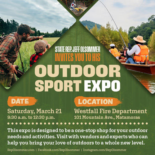 HAWLEY – In his continuing effort to promote the many outdoor recreational activities available in the 139th Legislative District to area residents, Rep. Jeff Olsommer (R-Pike/Wayne) will be hosting an Outdoor Sport Expo later this month.